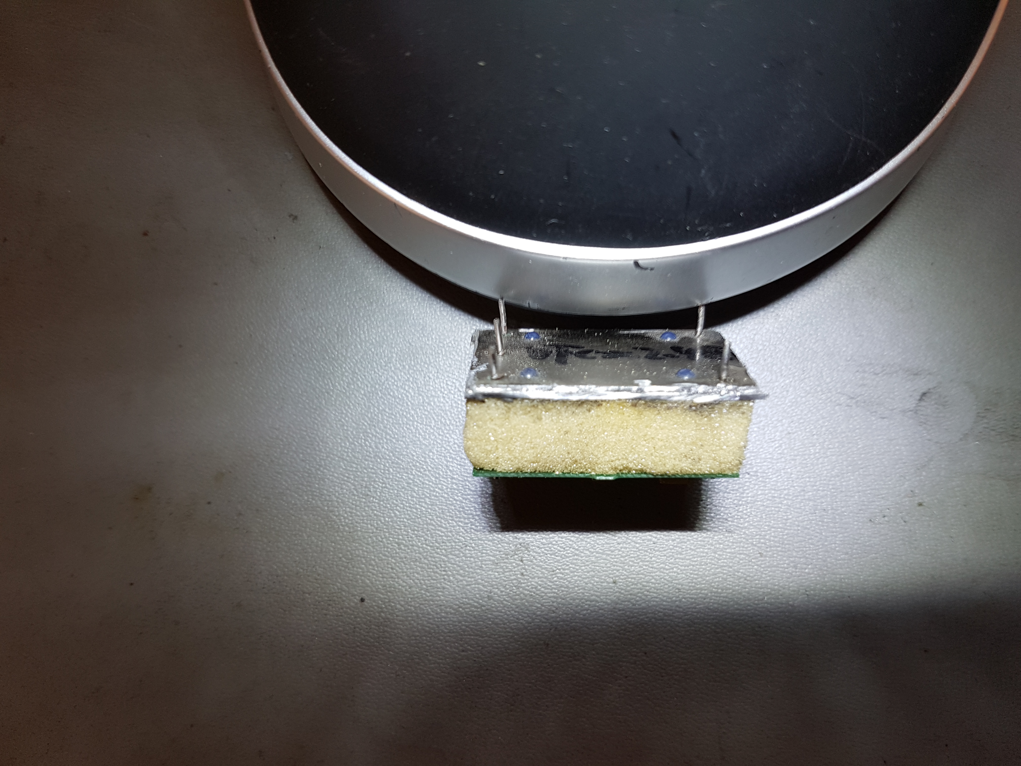 area between the PC board and the can. Just barely visible between them